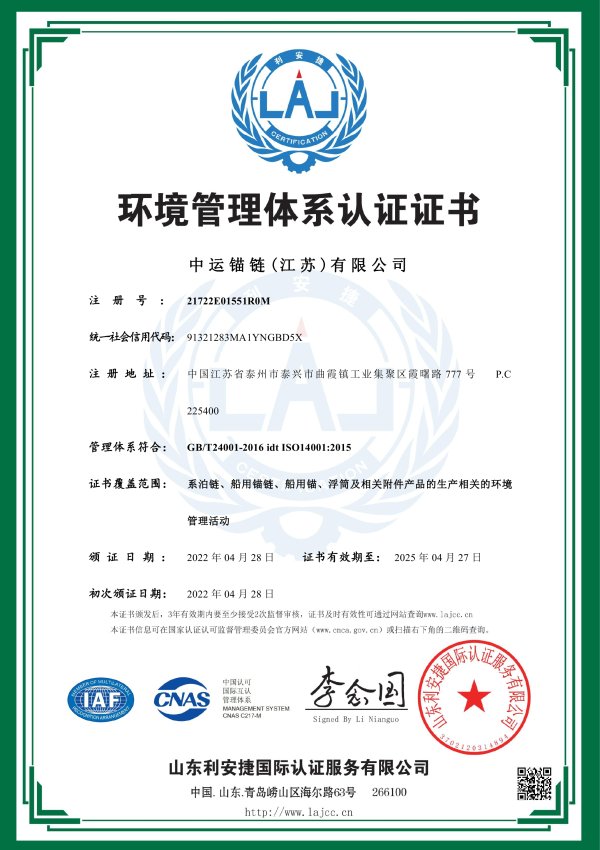 中運是全球領先的船用錨鏈、海洋系泊鏈制造及系泊系統一站式解決方案供應商,集船用錨鏈、海洋系泊鏈、船舶及海工鍛件、船舶及海工鑄造件、系泊系統等產品的研發、設計、生產、銷售、安裝于一體的大型船舶及海洋裝備制造企業。業務覆蓋船舶制造、船舶維修、深海科技、海洋工程、深海油氣平臺、漂浮式風力發電、深海漁業養殖、深海系泊系統、軍工等領域。集團成立于2012年,隨著業務的快速發展,2019年在江蘇泰興成立中運錨鏈(江蘇)有限公司,2022年將集團總部遷至江蘇宿遷,正式成立中運海洋裝備(江蘇)股份有限公司。